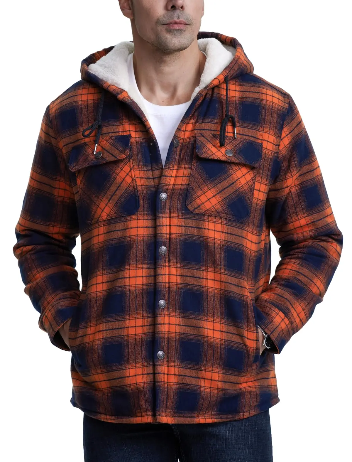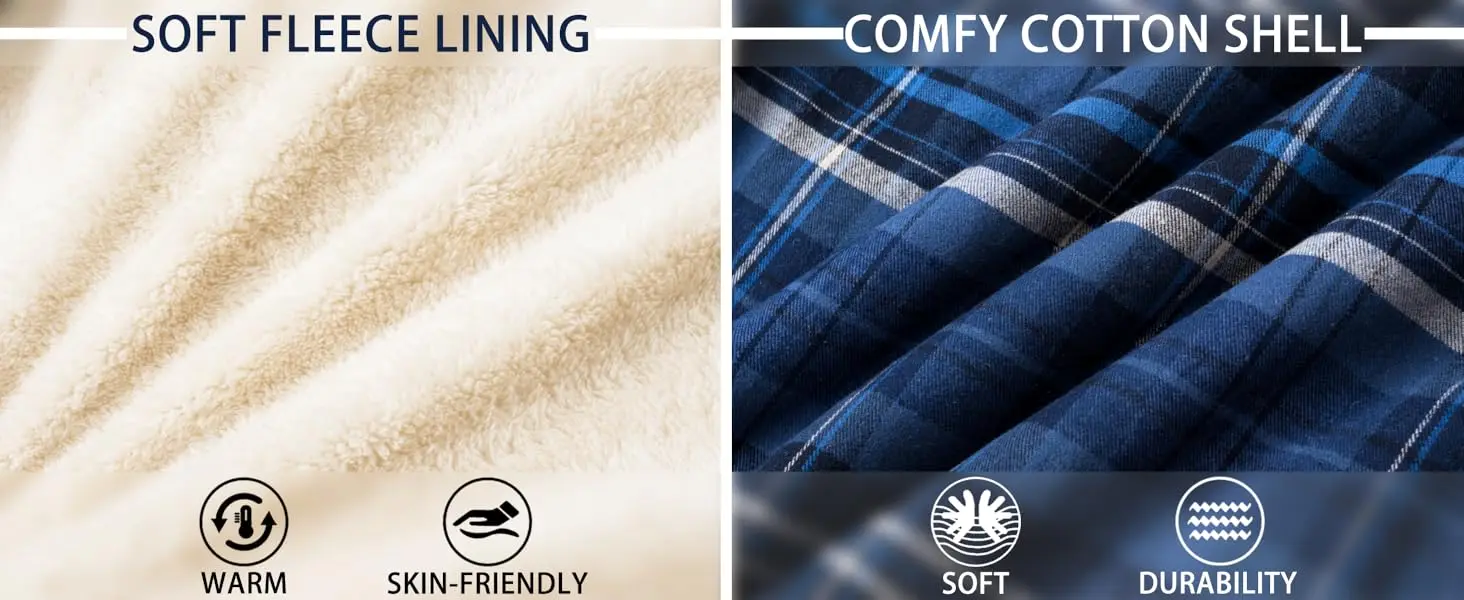 ● Material: This flannel hoodie is made of premium cotton shell and warm fleece lining, bringing you ultimate comfort and insulation in cold winter.