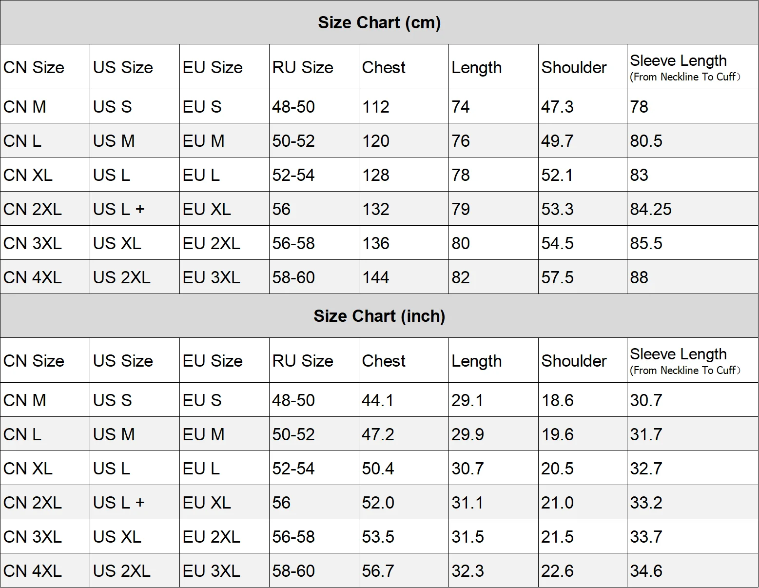 size_info: {"sizeInfoList":[{"length":{"cm":"US S","inch":"US S"},"size":"CN M","vid":-63},{"length":{"cm":"US M","inch":"US M"},"size":"CN L","vid":-64},{"length":{"cm":"US L","inch":"US L"},"size":"CN XL","vid":-65},{"length":{"cm":"US L +","inch":"US L +"},"size":"CN 2XL","vid":-66},{"length":{"cm":"US XL","inch":"US XL"},"size":"CN 3XL","vid":-67},{"length":{"cm":"US 2XL","inch":"US 2XL"},"size":"CN 4XL","vid":-68}]}