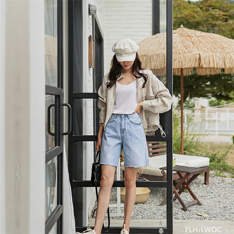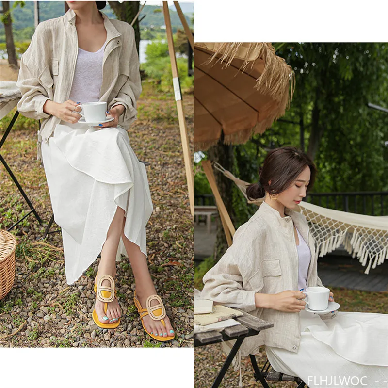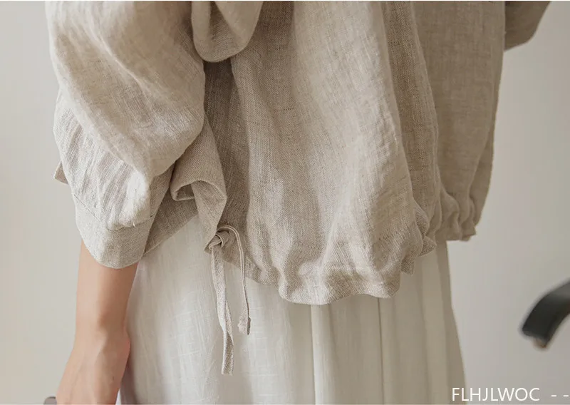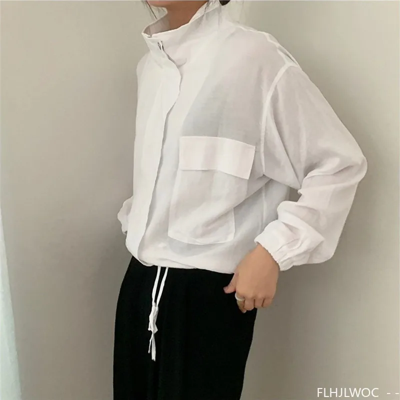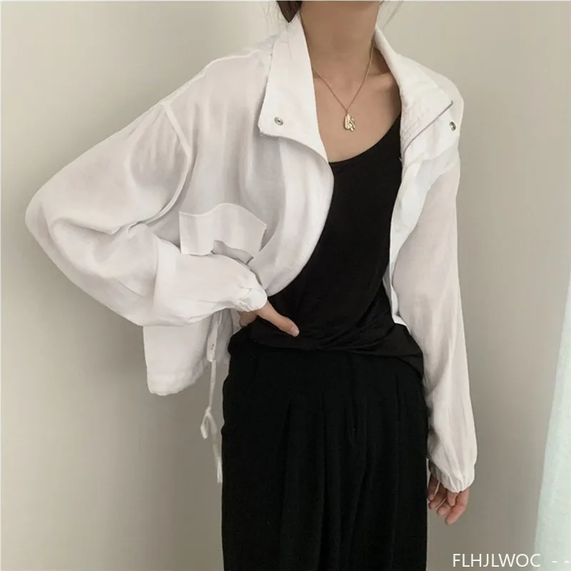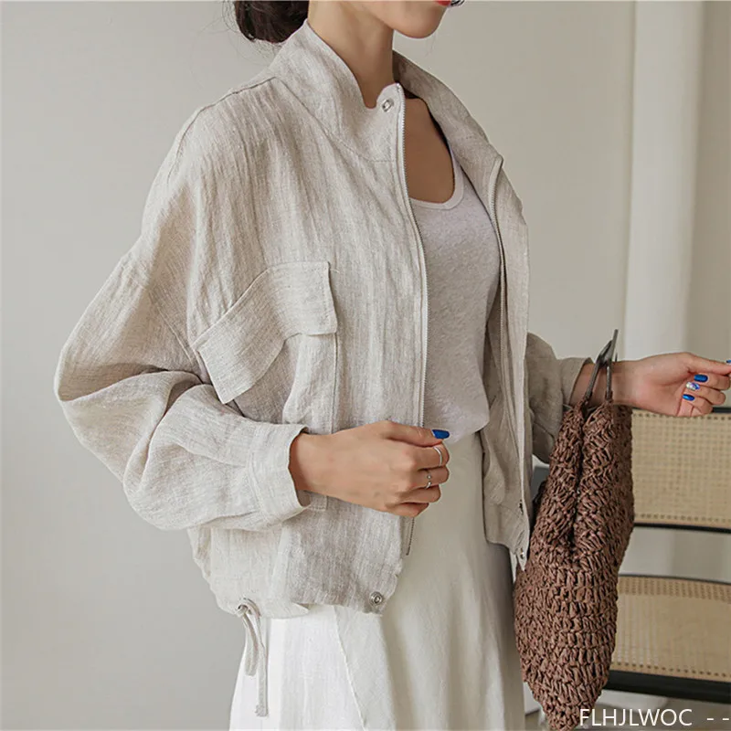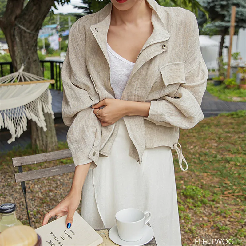 FLHJLWOC Brand Thin Airy Korea Style Short Outerwear Woman Casual Loose Lazy Chic Long Sleeve Cotton Blends Linen Windbreaker Coats Jackets