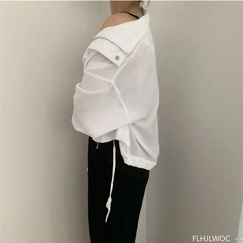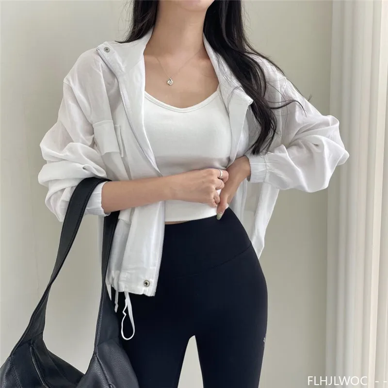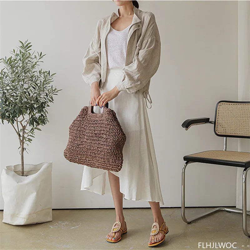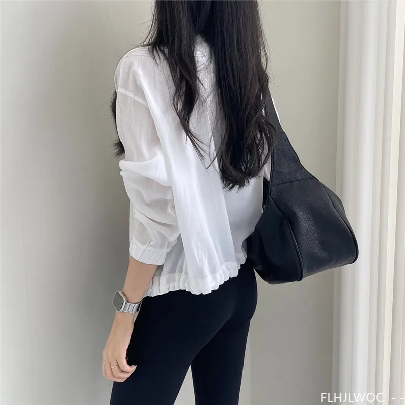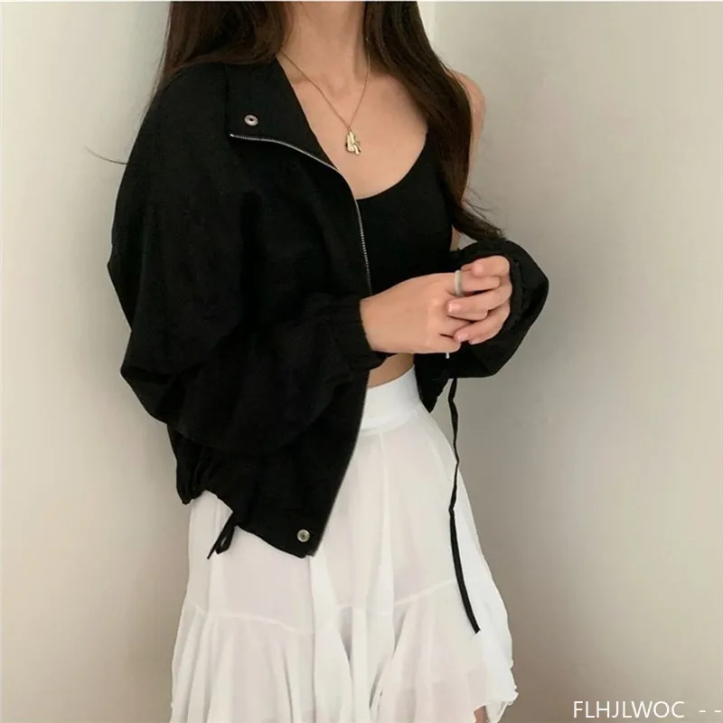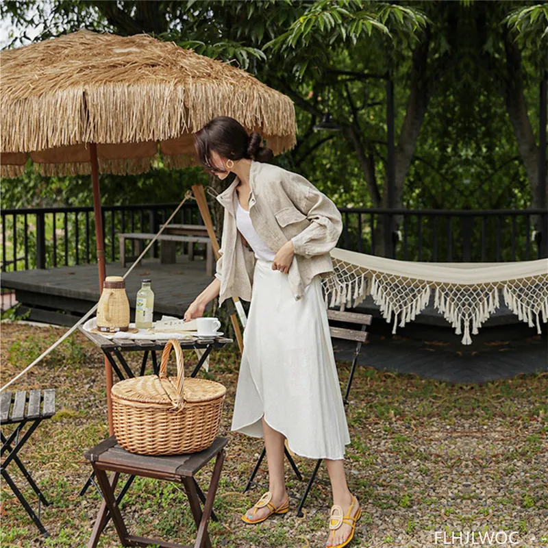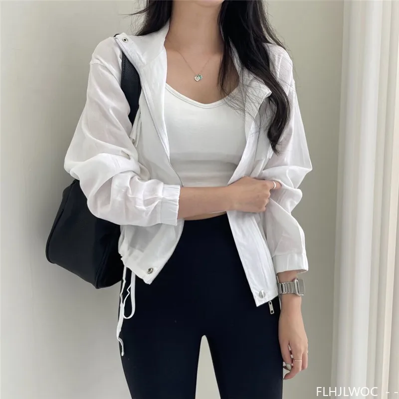 FLHJLWOC Brand Thin Airy Korea Style Short Outerwear Woman Casual Loose Lazy Chic Long Sleeve Cotton Blends Linen Windbreaker Coats Jackets
