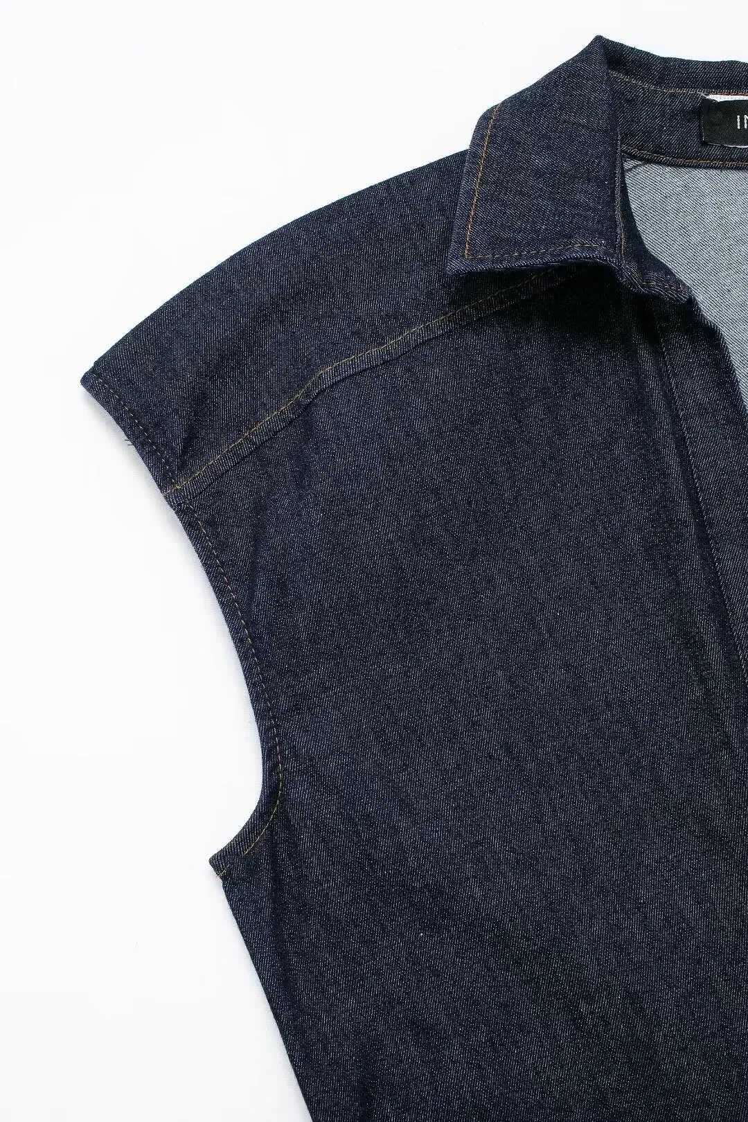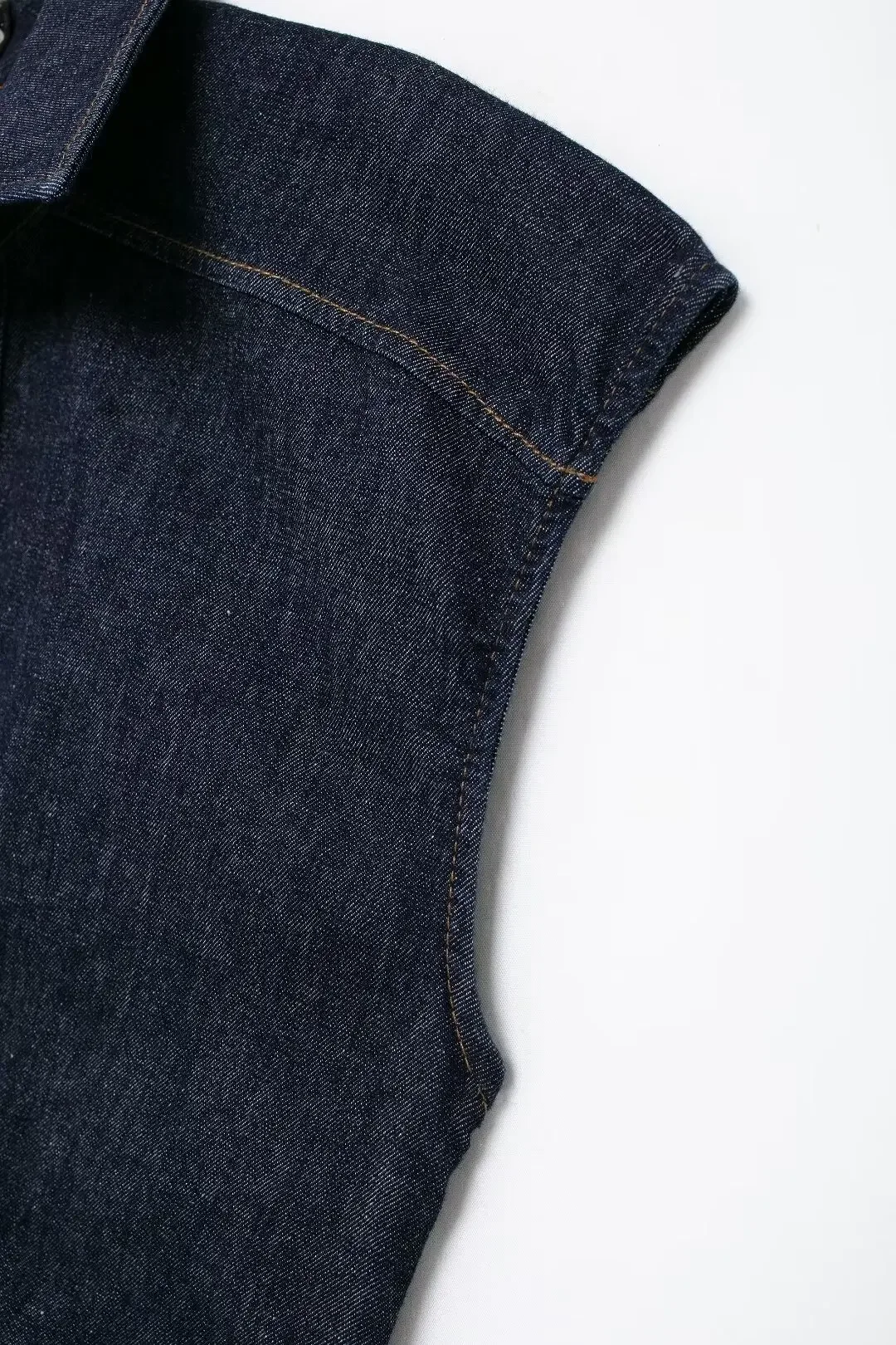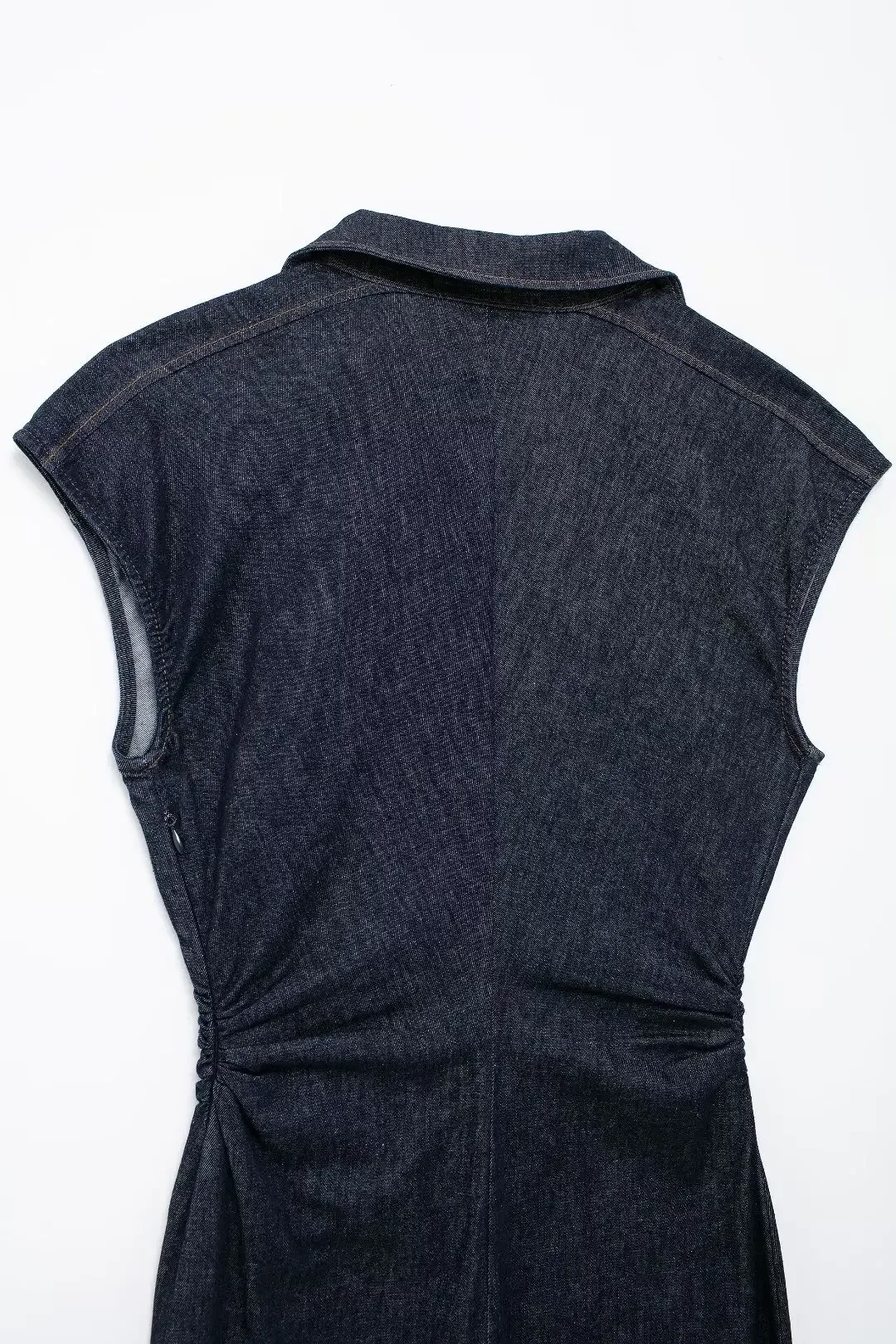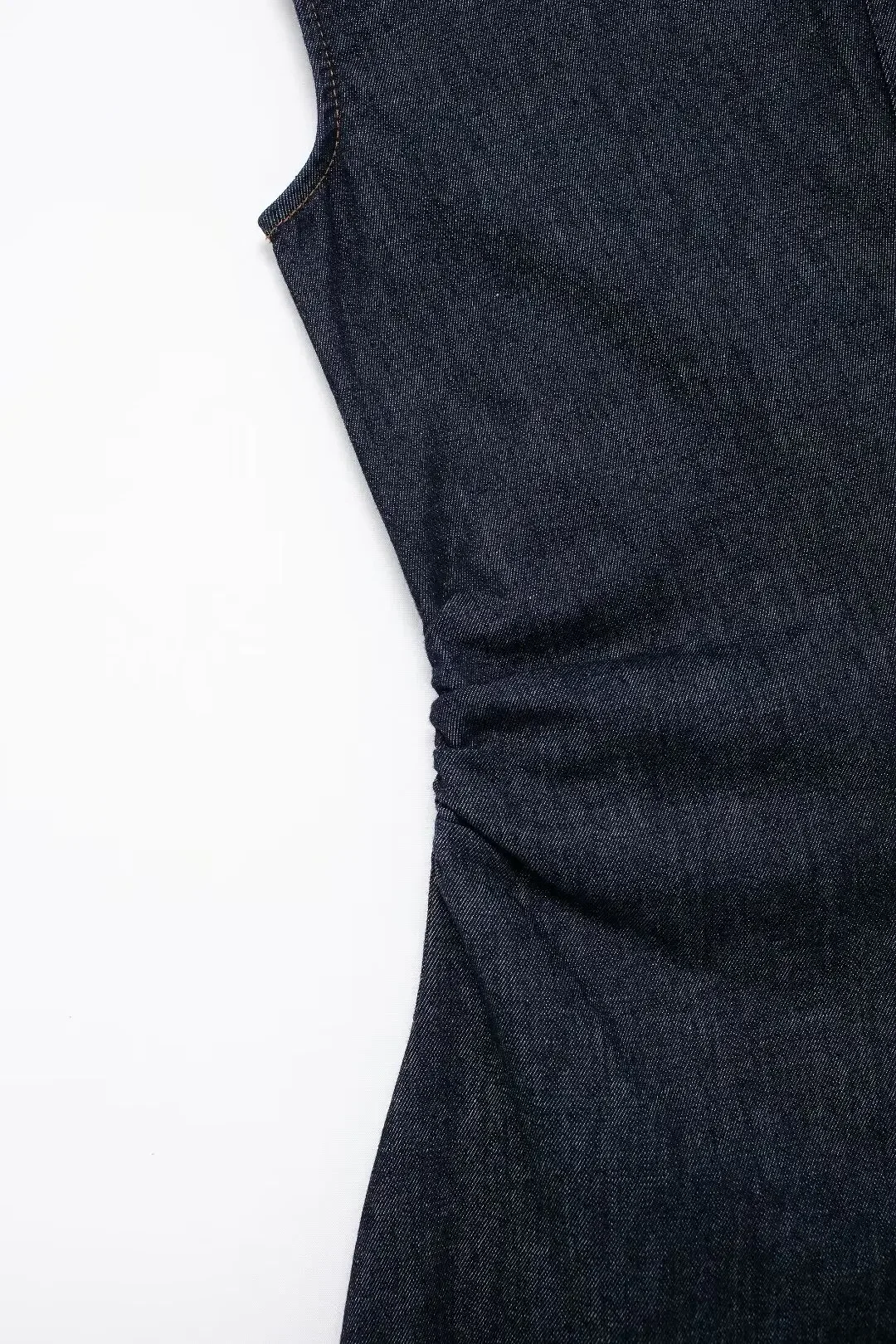 TRAFSHE Sleeveless Denim Long Dress Women Bodycon Tank Midi Dress Woman Summer Ruched Button Up Casual Dresses For Lady