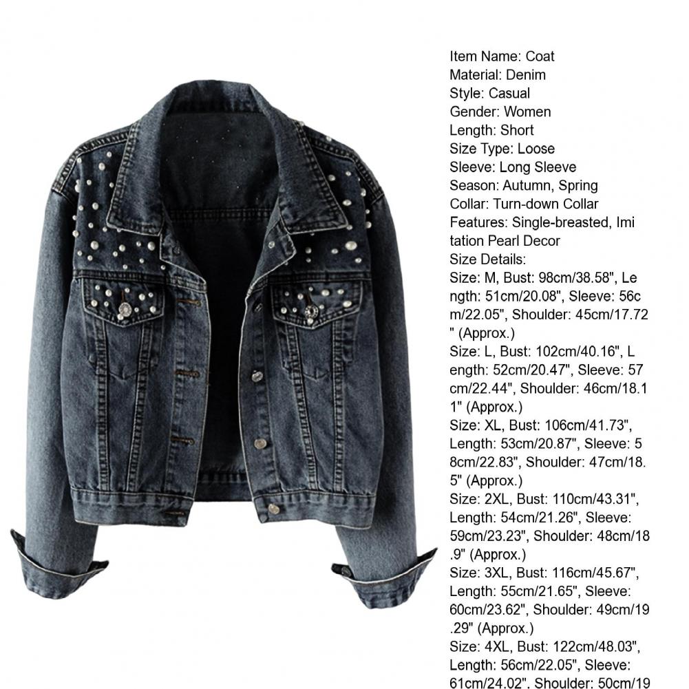 Trendy Women Denim Jacket Firm Stitching Autumn Denim Jacket Breathable Cardigan Imitation Pearl Autumn Coat Beads Decor